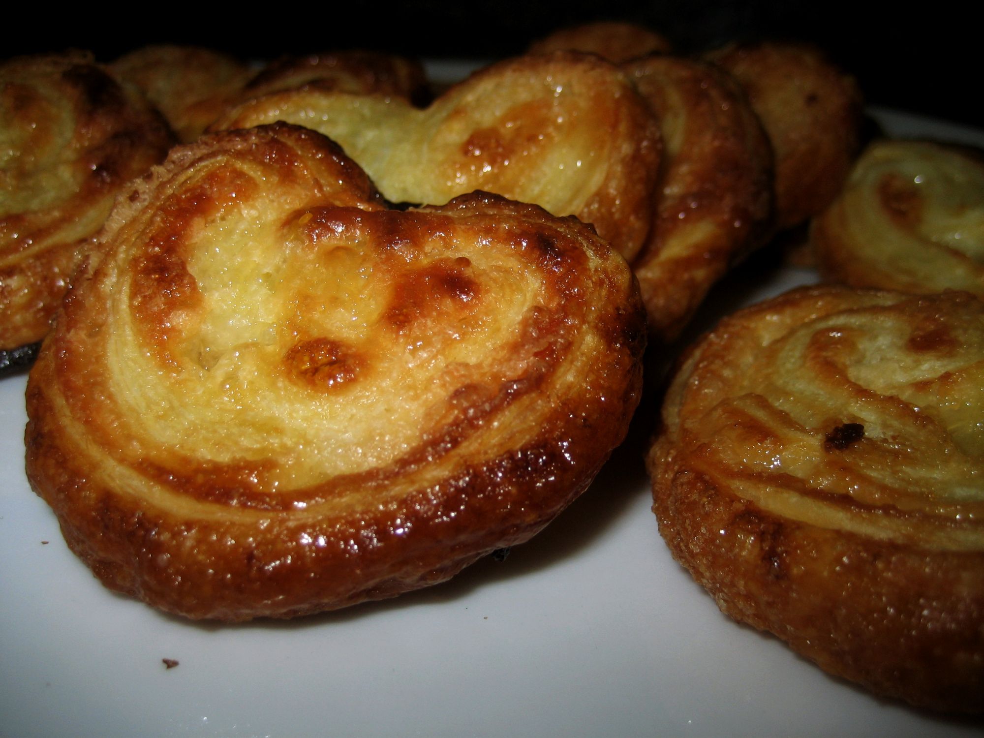 Tras haberlo doblado dos veces, juntamos los extremos formando de tal modo que la masa adquiera una forma parecida a la de un rollito. Cortamos toda la caña en porciones del grosor de 1cm (un dedo aproximadamente). Con una lámina saldrán unas 20 palmeritas.