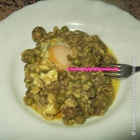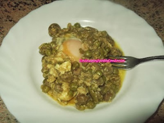 Guisantes y habitas esparragados con huevos cuajados