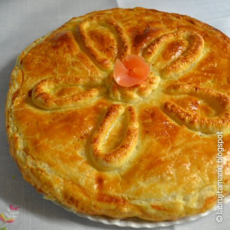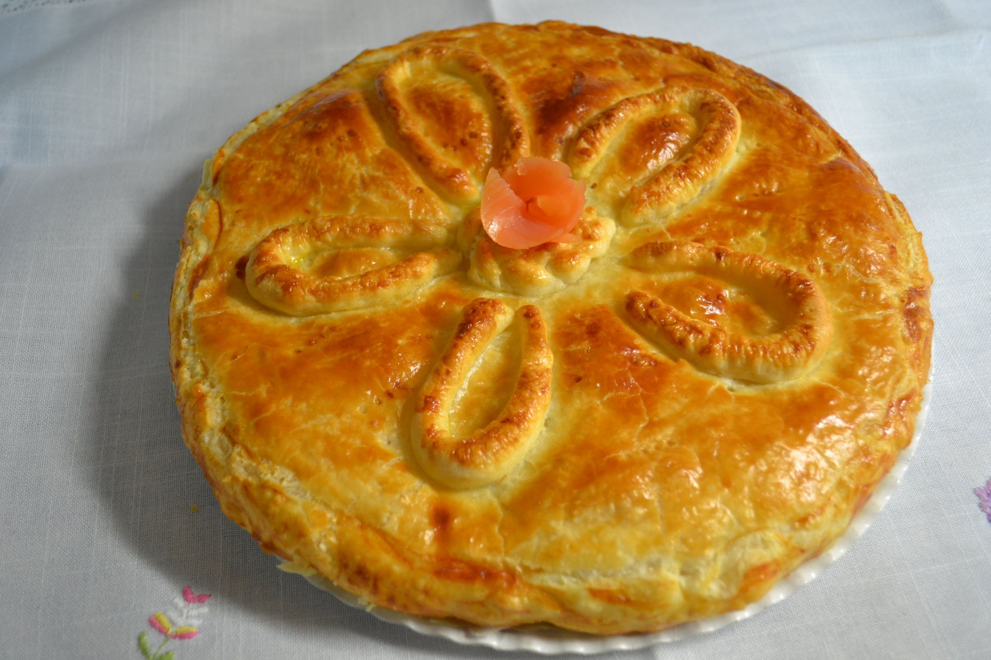 Forramos un molde con una lámina de hojaldre.Colocamos las rodajas de patata.Encima le echamos la cebolla,y a continuación el salmón ahumado troceado.Colocamos el resto de las patatas.Salpimentamos y añadimos la nata.Tapamos con la otra lámina de hojaldre,y decoramos nuestra empanada como queramos.Pintamos con huevo batido y metemos en el horno a media temperatura unos 45 minutos,,Hasta que veamos que el hojaldre está dorado.