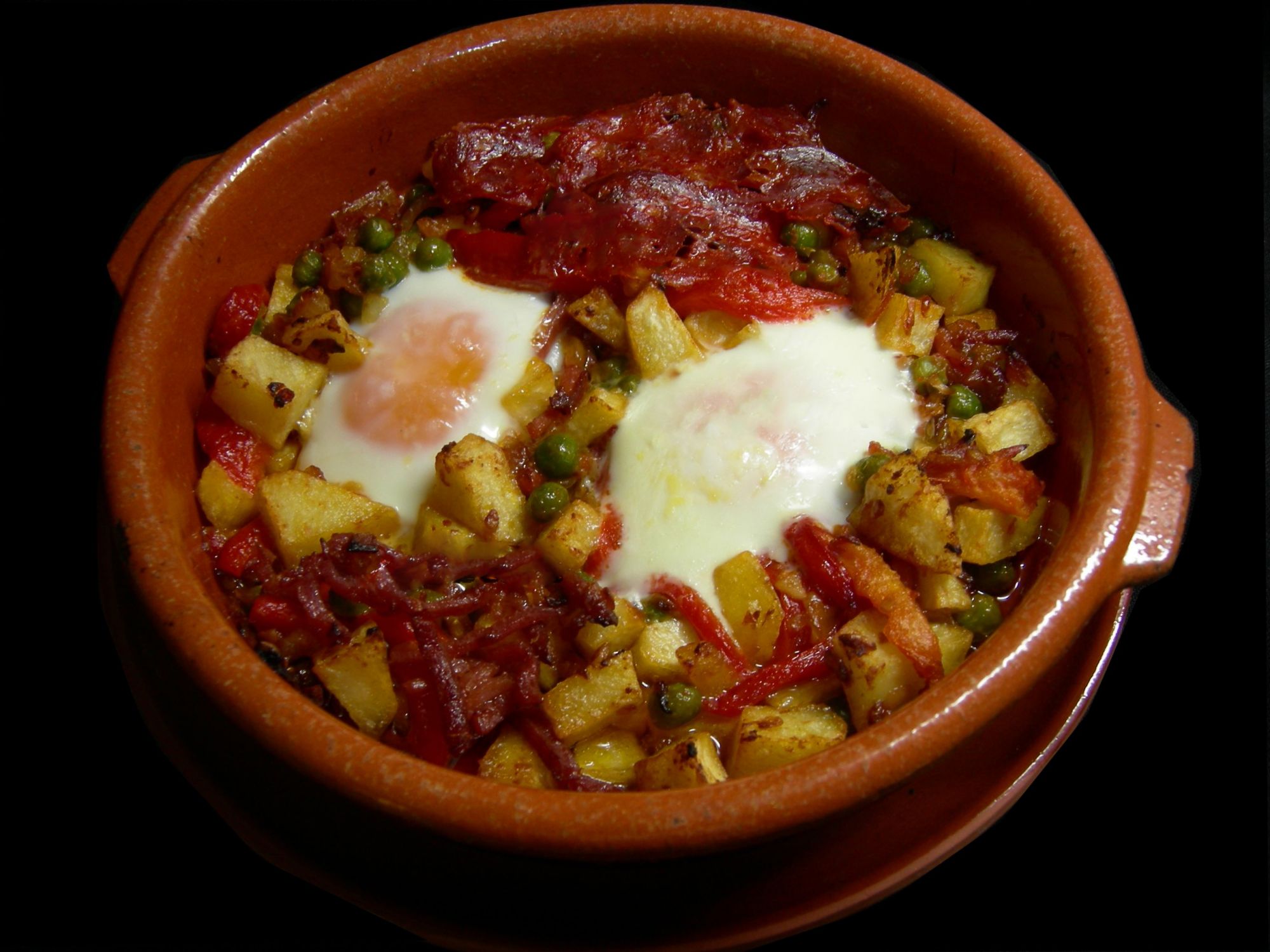 Rellenamos las cazuelas.Hacemos un par de agujeritos en el centro y echamos los huevos.