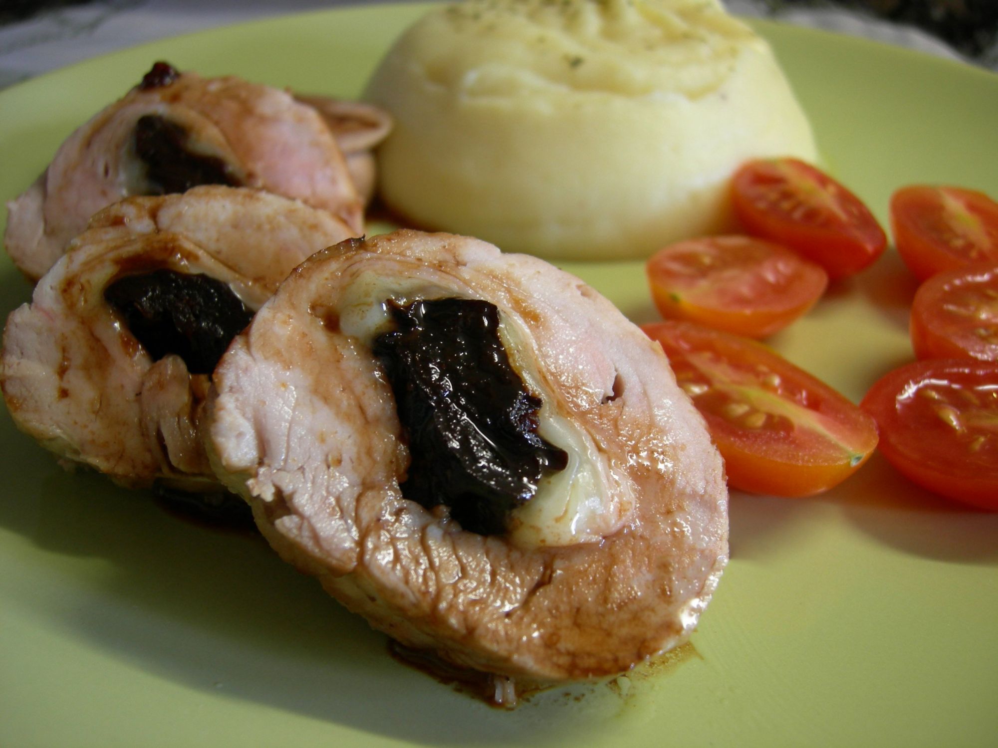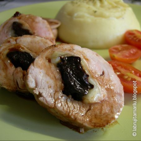 Colocamos una loncha de jamón de pavo,una loncha de queso,y unas ciruelas.