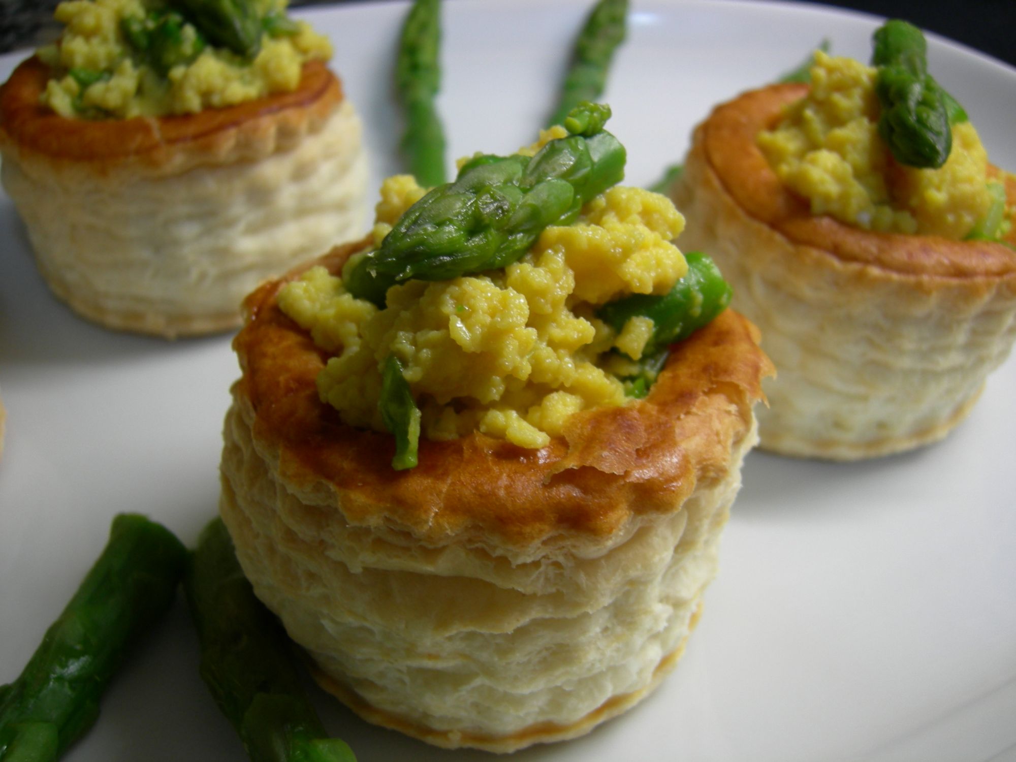 VOLOVANES RELLENOS DE HUEVOS REVUELTOS Y ESPÁRAGOS