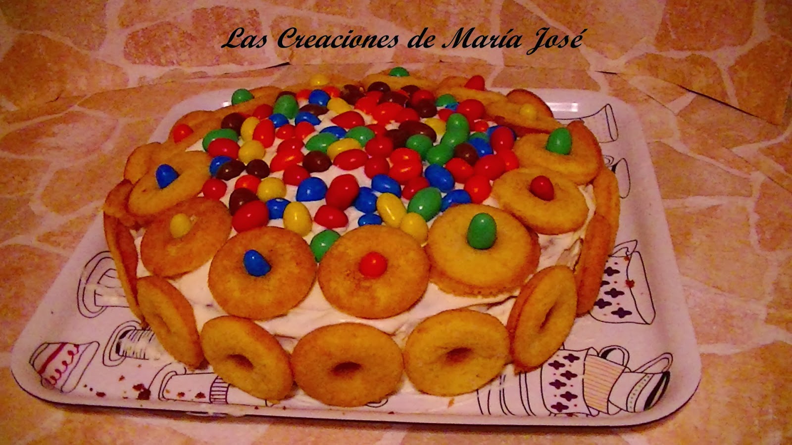 Se mezcla todo que quede una masa fina. Yo los hice en la donutera, pero los que no la tengais hay moldes de donus para hacerlos al horno. Se van echando cucharadas de la masa en los huecos y se mete al horno. Cuando esten hechos se decora la tarta con ellos y en el centro se ponen los emanems y se mete al frigo. Es mejor hacerla el día antes de comerla. La foto de abajo es un molde de donus para horno