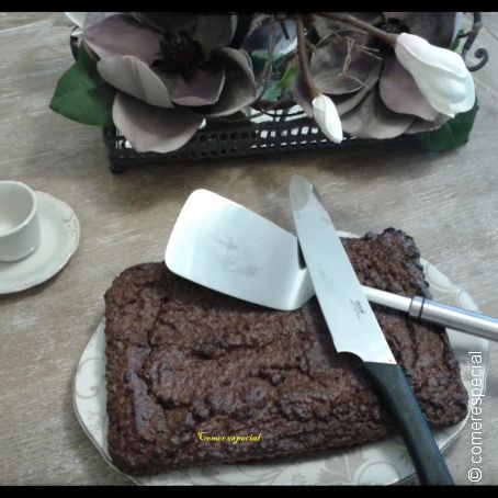 - INGREDIENTES: 320 grs. de chocolate, a ser posible, al 70 % o más; 190 grs. de azúcar; 100 de harina de repostería; 150 de aceite de oliva; 220 de nueces; 4 huevos tamaño L y 1/2 sobre de levadura.