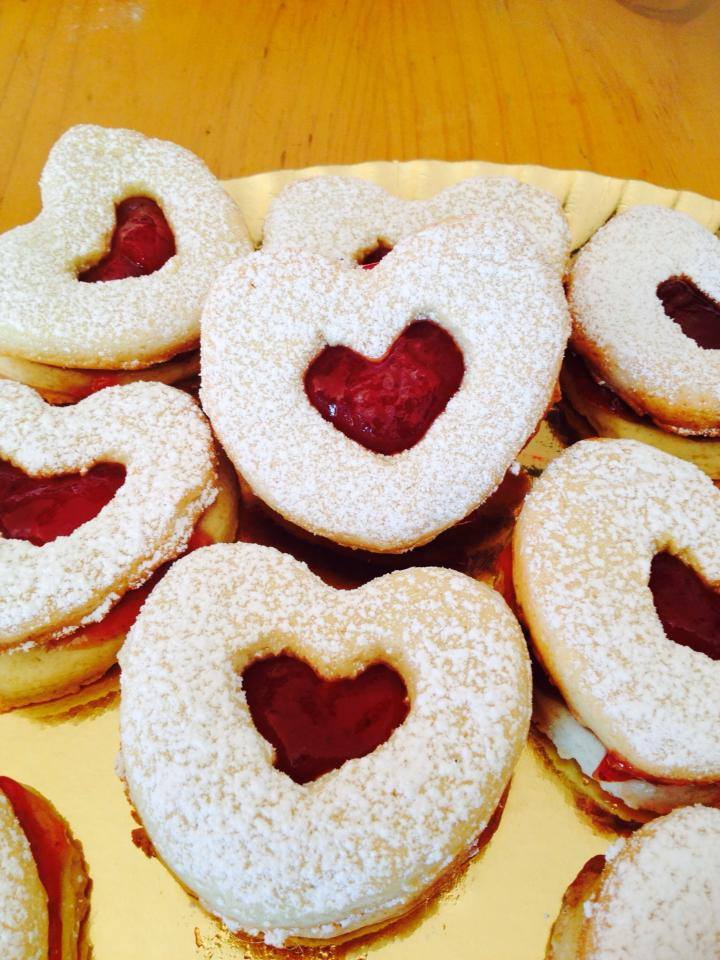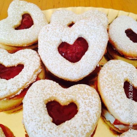 En las galletas que tienen el corazón en el centro espolvorearles azúcar glas.