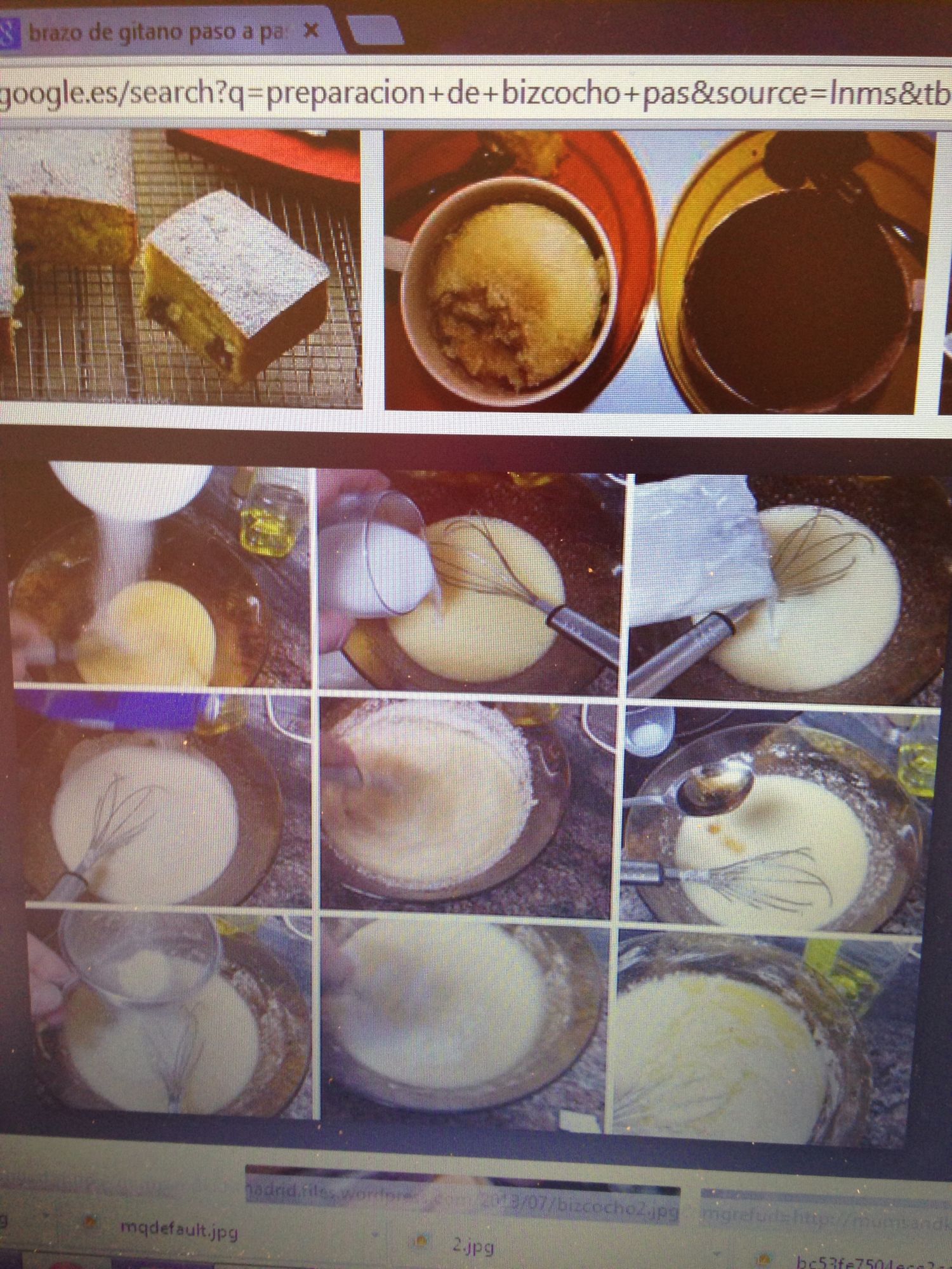 Primero mezclamos la natilla con los huevos, después añadimos el aceite y a contibuación la harina poco a poco y tamizad