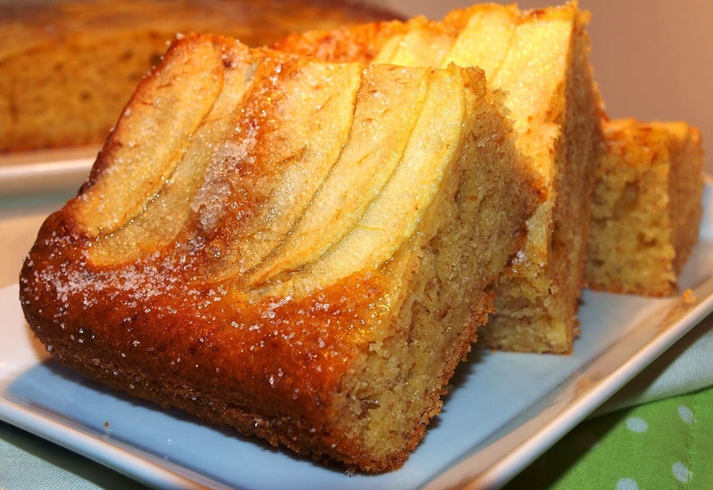 Cortar en láminas y mezclar con la masa del bizcocho reservando un poco para poner por encima de adorno.