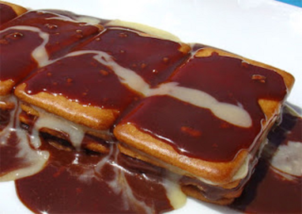 Por último otra capa, como no, de galletas y fundimos el chocolate con Leche extendiendo y terminando con la última capa de galletas.