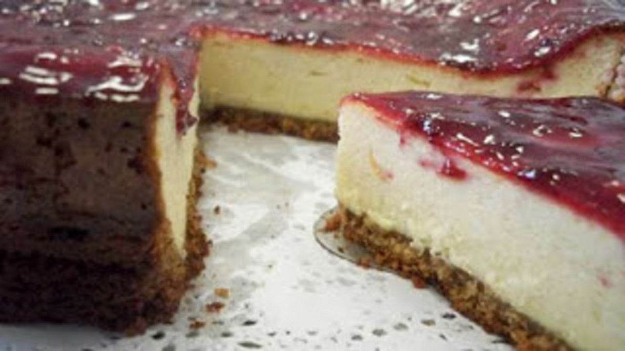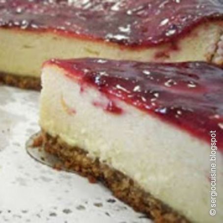 Pones la mezcla que teníamos de antes en el molde y al horno de 20 a 25 minutos a 170 grados, después a la nevera, unas dos horas, y para terminar ponemos la mermelada sobre la tarta ya una vez fría, se puede poner de arándanos, melocotón fresas, o la que más te guste