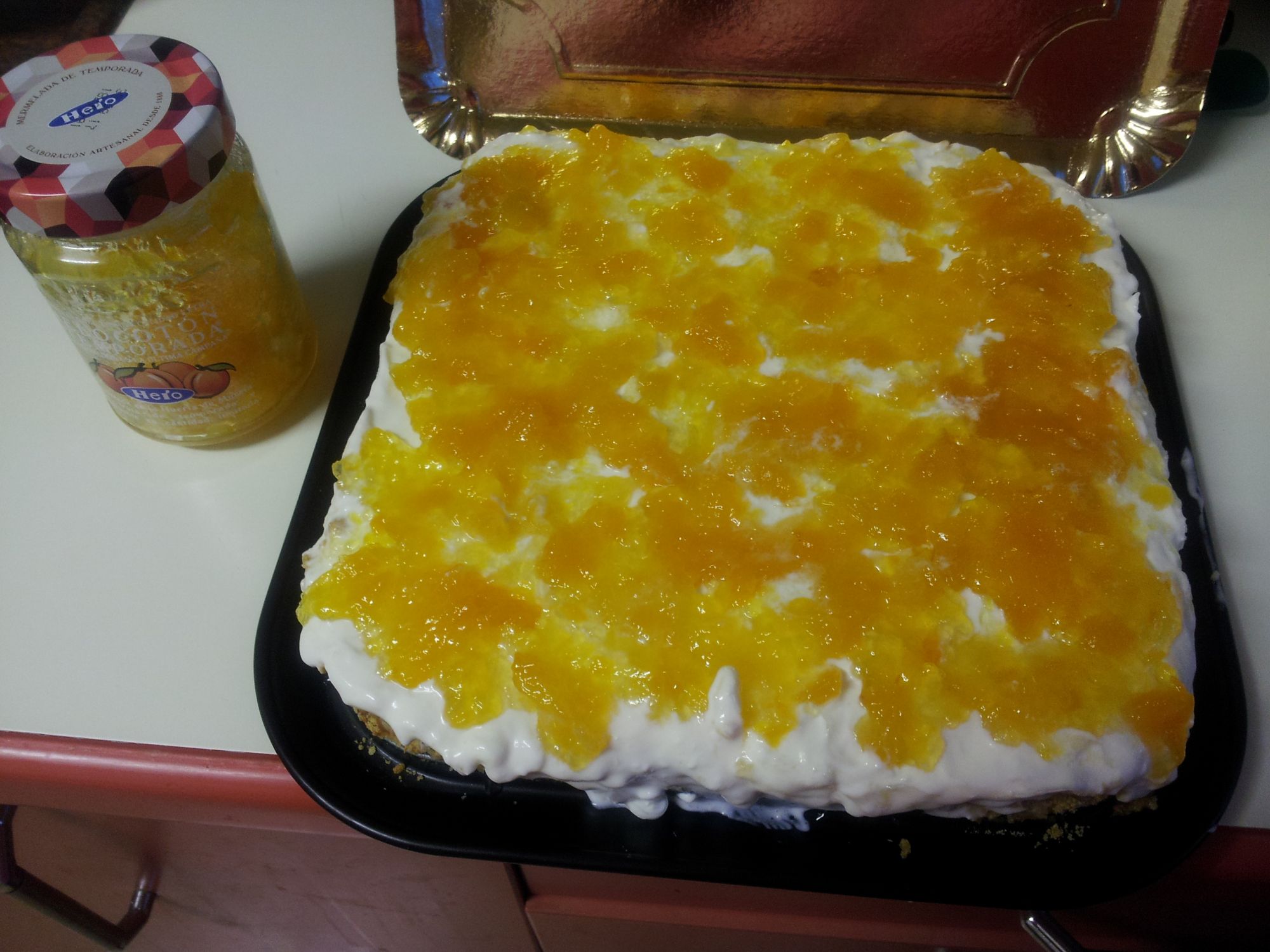 Echar toda la mezcla encima de las galletas y dejar reposar en el frigorifico al menos 4 horas.