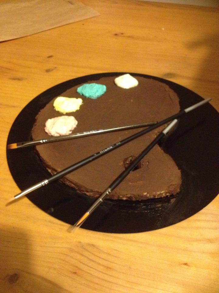 Poner un poquito de crema de mantequilla en un ladito de la tarta para simular la pintura.