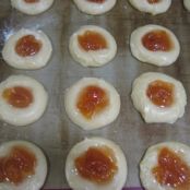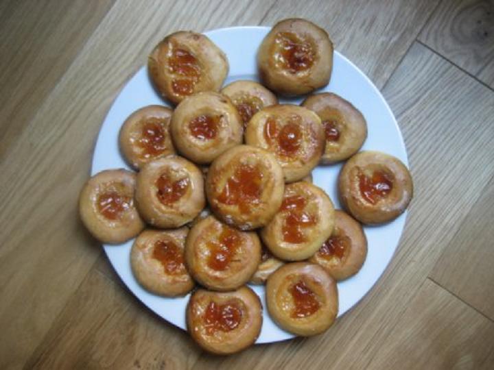 3. Hacer un hoyo en la superficie con la yema del dedo enharinada, y rellenar con una cucharadita de mermelada de calabaza.