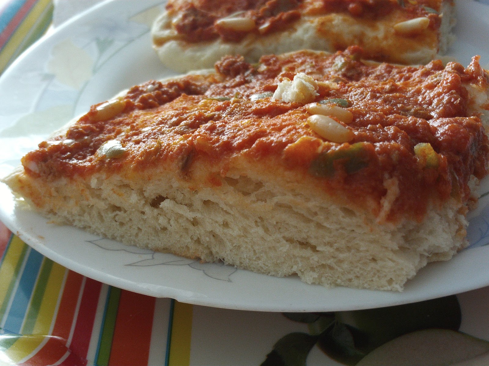 Cuando la masa haya levado, sobre una fuente de horno con papel vegetal, la extendemos bien y la cubrimos con el sofrito que habíamos reservado en el paso 1.