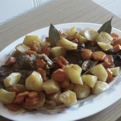 Carne asada con patatas y verduras