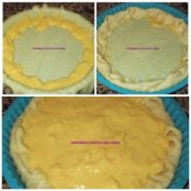 A continuación pondremos flan pegado al borde y con la masa sobrante cerraremos. Seguidamente rellenamos hasta quedar uniforme con el borde.