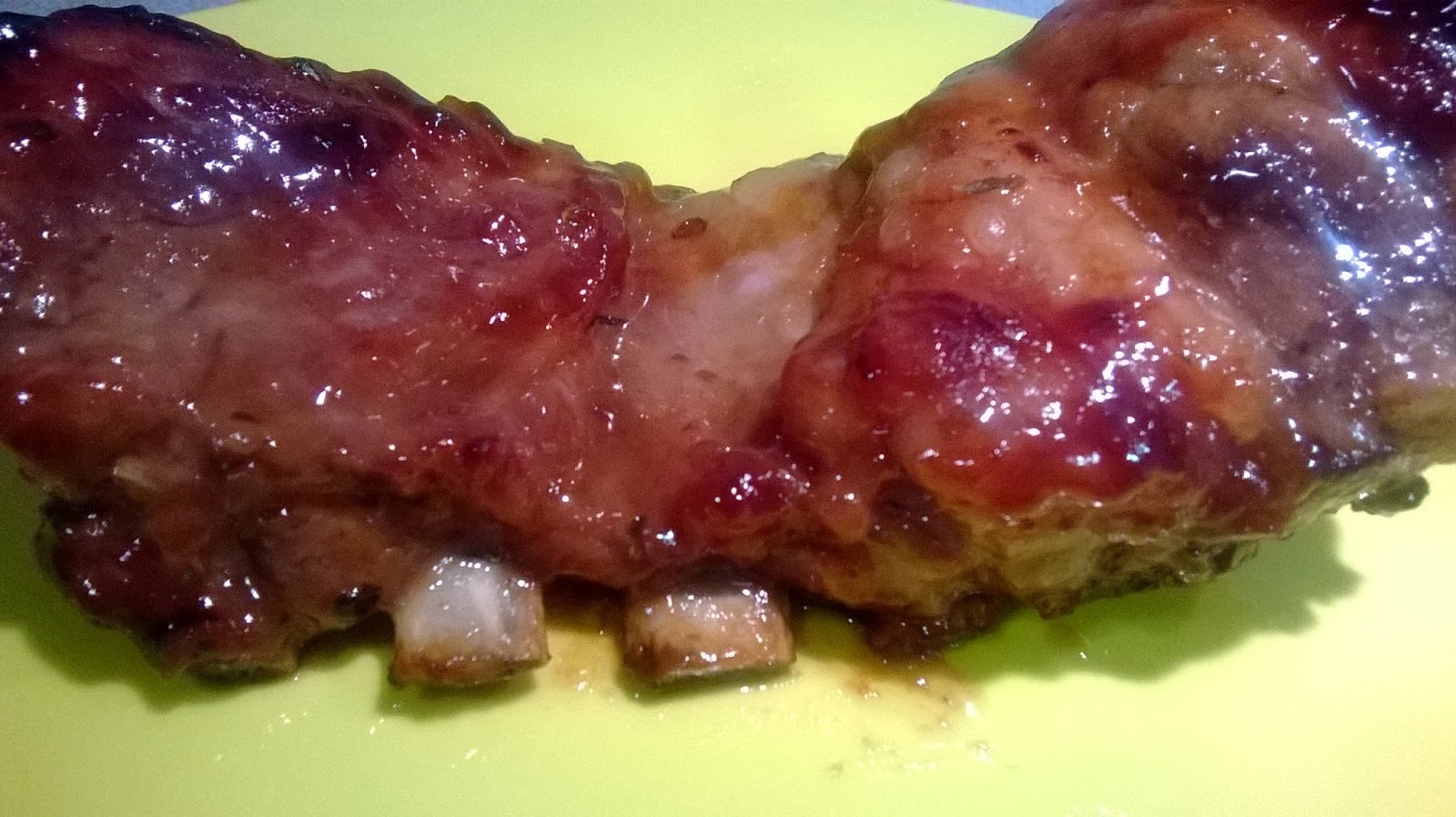 Encendemos el horno a 200° y lo ponemos 10 minutos para que se vaya calentando. Cuando pase los 10 minutos metemos el costillar y le dejamos 30 minutos mas. Pasado los 30 minutos sacamos el costillar y volvemos a dar con el pincel a todo el costillar y volvemos a meter en el horno 20 minutos.