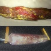 Con algo de antelación a que vaya a prepararse, sacamos la pieza del congelador, y cuando comience a descongelarse, cortamos lonchas lo más finas posibles (con un cuchillo jamonero), y las vamos colocando en el plato donde vayamos a servirlas antes de que se descongelen del todo.