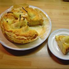 Primero hacemos el caramelo y lo echamos en el molde, encima ponemos las peras que previamente habremos pelado y descorazonado, las partimos en cuatro mitades y antes de poner el hojaldre pondremos daditos de mantequilla por encima y por último pondremos el hojaldre.