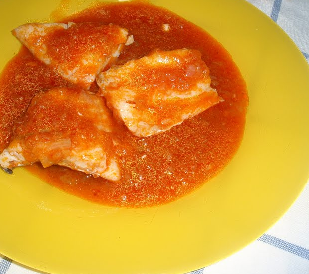 Abrir el recipiente varoma por el lado opuesto para no quemarse, sacar el bacalo a una fuente y verter la salsa sobre el. Y ya está listo para servir el bacalao con tomate con thermomix.