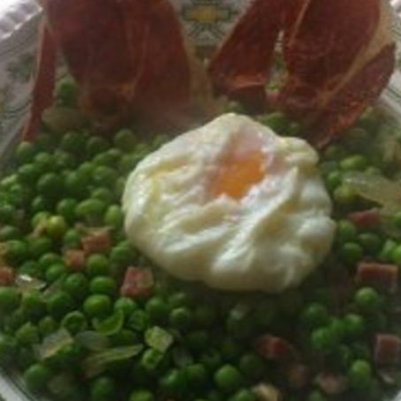Prepara una plato de guisantes con peineta ayudándote de la rapidez del microondas, que te servirá para preparar unos originales crujientes de jamón.