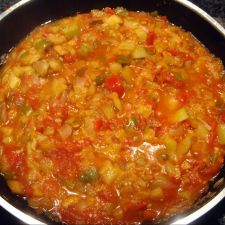 Cuando esté todo completamente cocinado añadiremos el tomate y las especias, rectificaremos de sal y dejaremos cocinando 10 minutos a fuego suave para que los sabores se integren completamente.