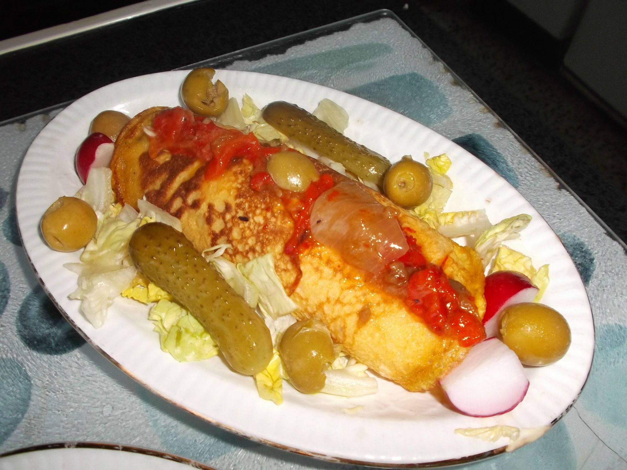 Sobre la lechuga colocamos la tortilla francesa.