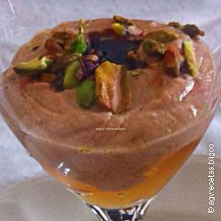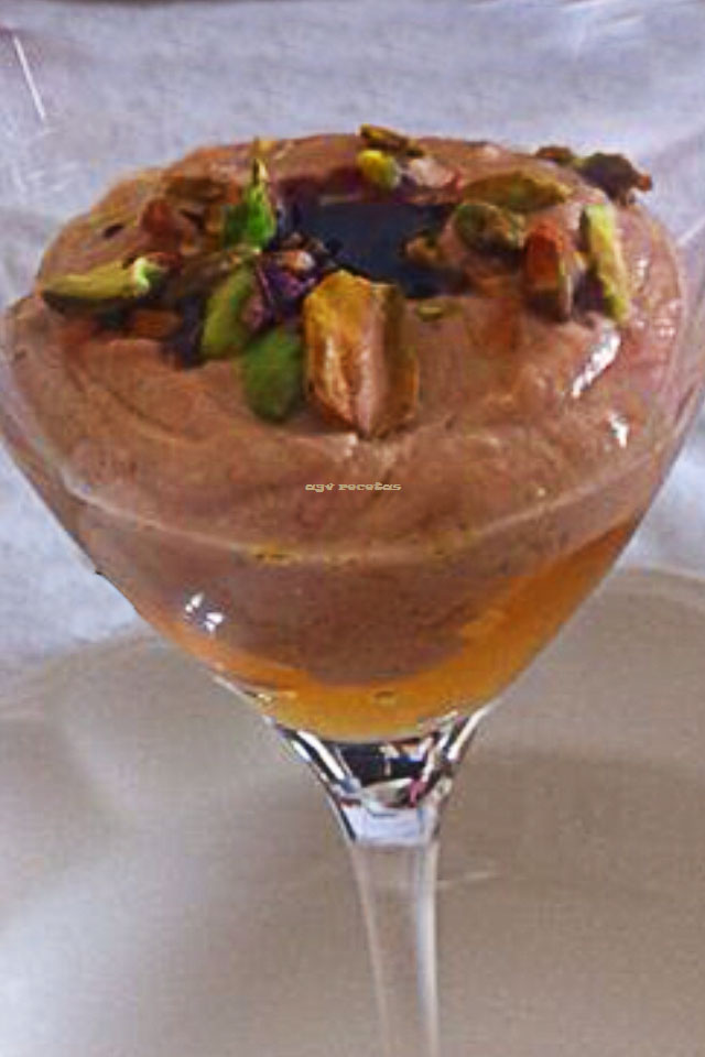 Para montar el plato (que puede dejarse preparado), colocamos todos los vasos de chupito o coctel (no más de 6 con estas cantidades), y colocamos en el fondo una cucharada sopera de compota de manzana (marca hero), encima, el doble de mousse de foie, y unos pocos pistachos, regando por encima con unas gotas de Pedro Ximenez caramelizado.
