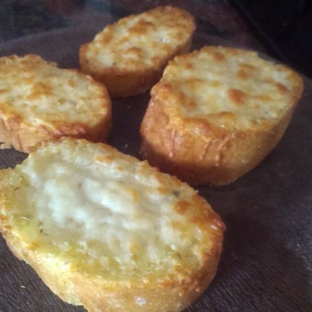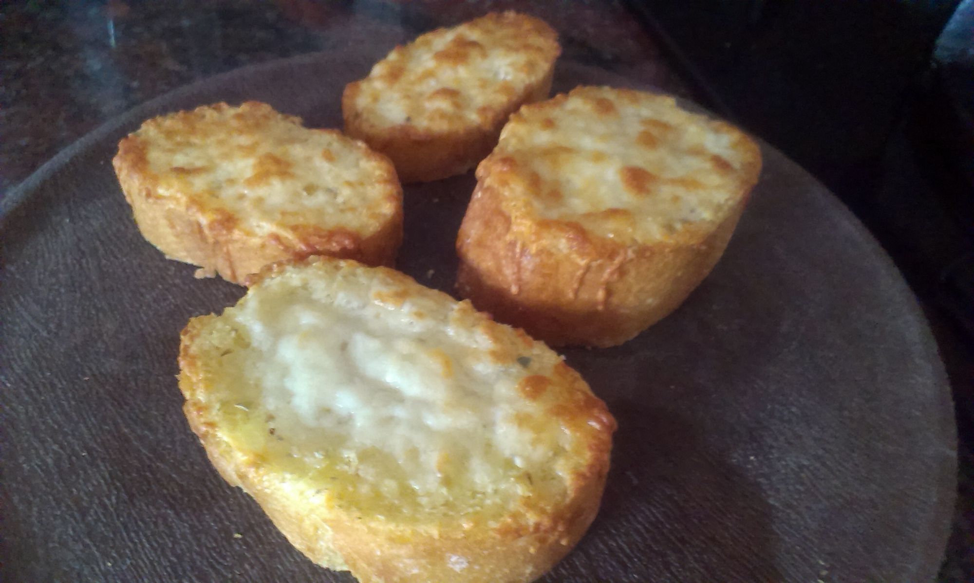 Cuando tengamos todas las rebanadas de pan untadas con la mezcla de la margarina con el ajo y el perejil, ponemos el queso.