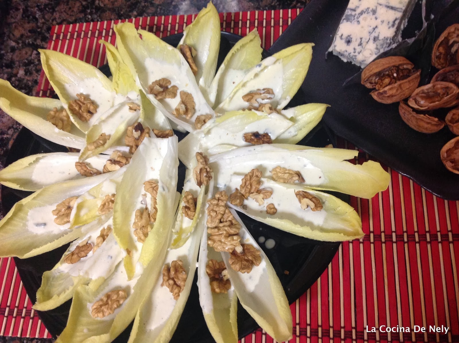 Escurrimos las endivias las colocamos en los platos ,servimos la salsa por encima y repartimos las nueces por encima y listo para comer.