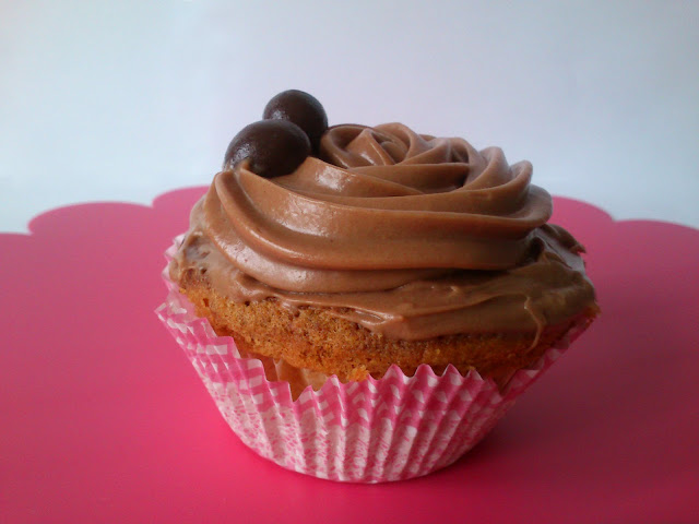 Ponemos una fina capa de crema en cada cupcake. Decoramos con la manga pastelera y listo!