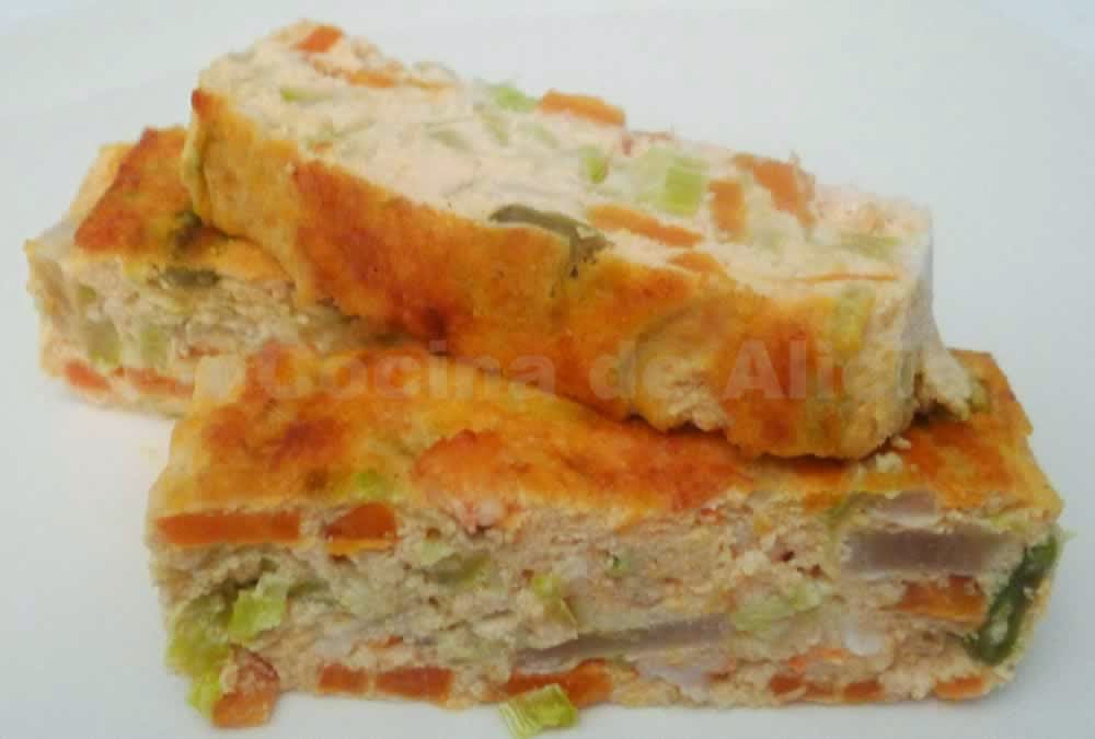 Engrasar un molde con mantequilla o margarina y disponer una capa de verduras y otra de batido, una nueva capa de verdura y otra de batido, así hasta completar las cantidades.