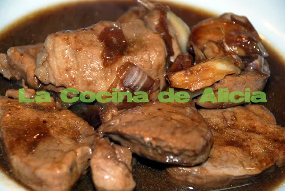 Incorporar el solomillo y dejar cocinar unos minutos. Servir con patatas panaderas.
