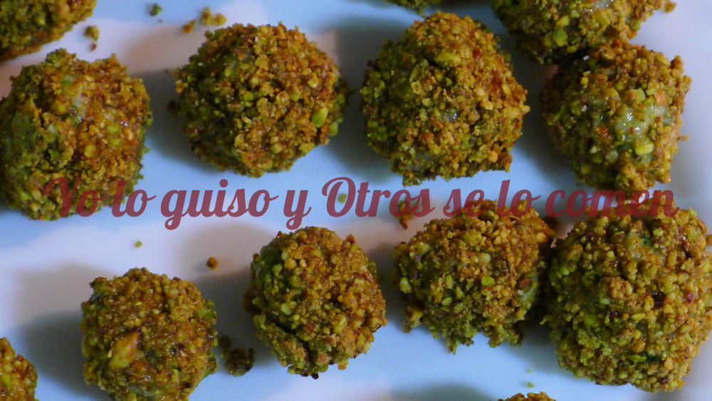 A continuación rebozamos directamente por huevo batido y los pistachos que hemos molido. Eso sí, las manitas se guarretean bastante.