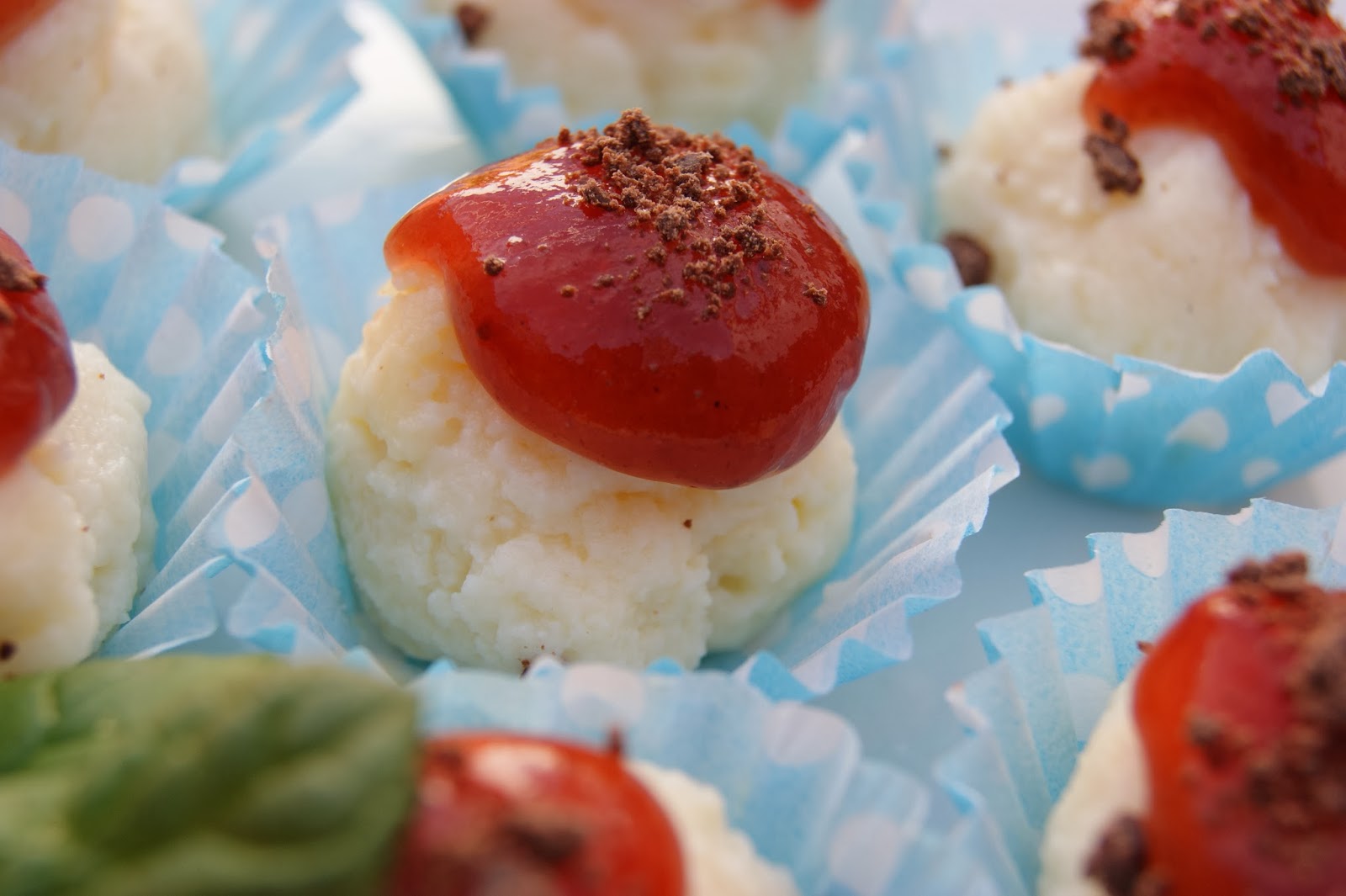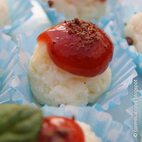 Dejar enfriar ligeramente en el horno y después totalmente sobre la encimera, sin meter en el frigorífico. Cuando esté totalmente fría y se pueda manejar con facilidad, realizaremos bolitas con una cucharilla de bolas para la fruta y las depositaremos en cápsulas de trufas, con la decoración que más nos guste.