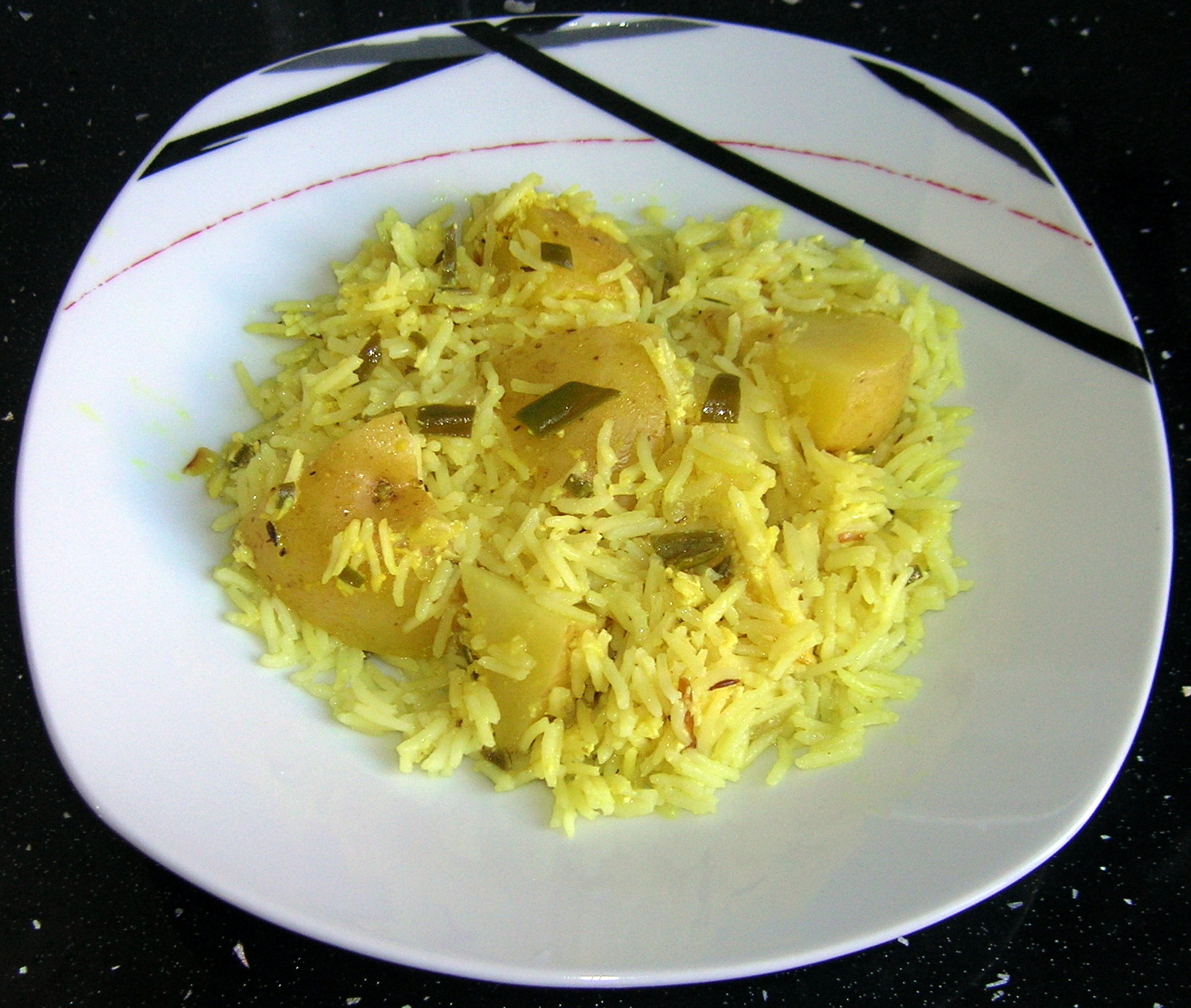 Dentro de estos, cabría destacar el " lahori", "sindhi biryani" (ambos calificados así por su región de procedencia, Lahore y Sind respectivamente) y al que hoy dedico este post, y que tiene como peculiaridad el hecho de etas elaborado únicamente con ingredientes de origen vegetal, llamado "tahiri".