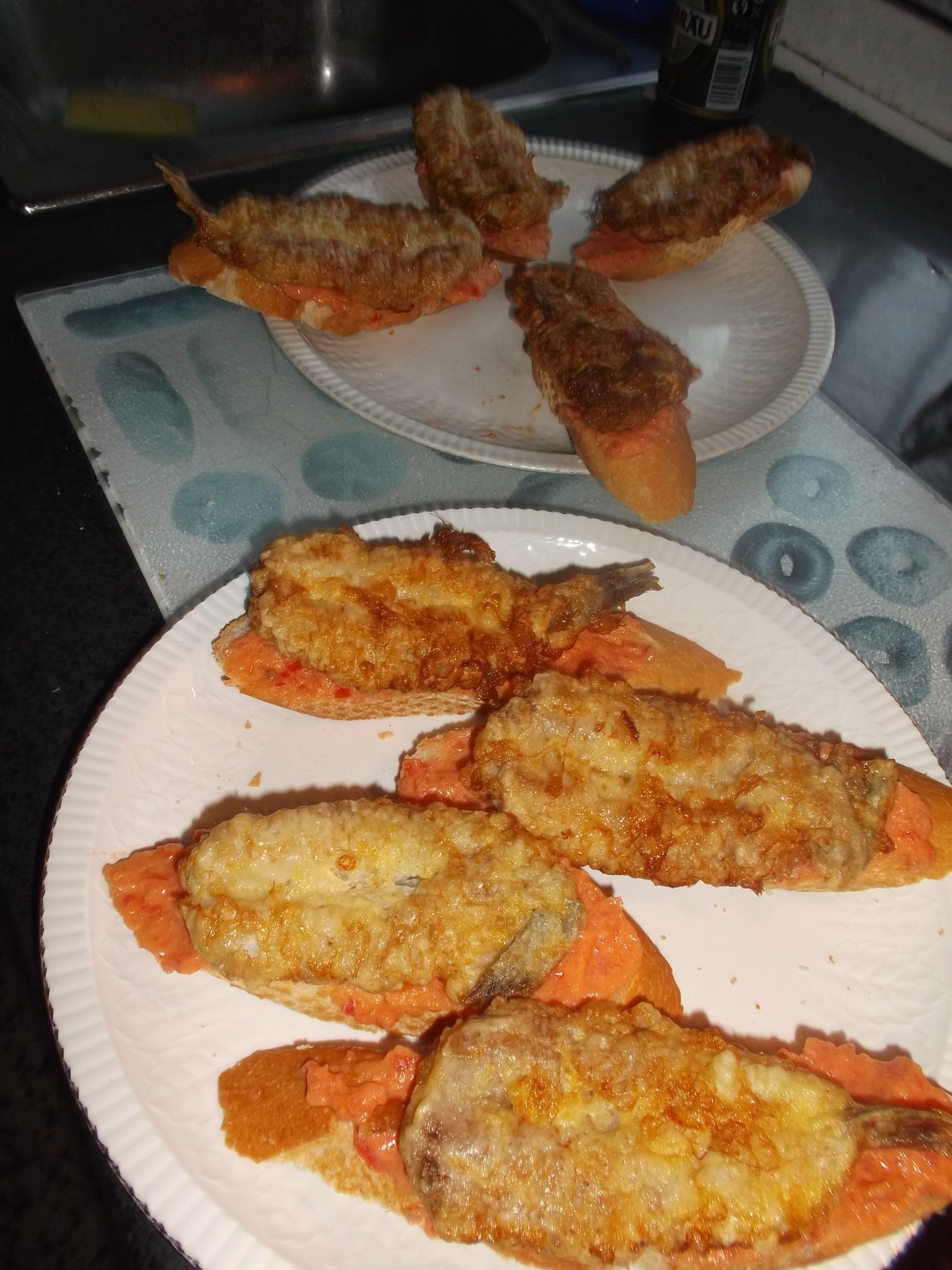 Freímos en aceite templado y colocamos sobre las rebanadas de pan untadas de tomate.