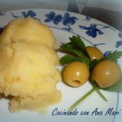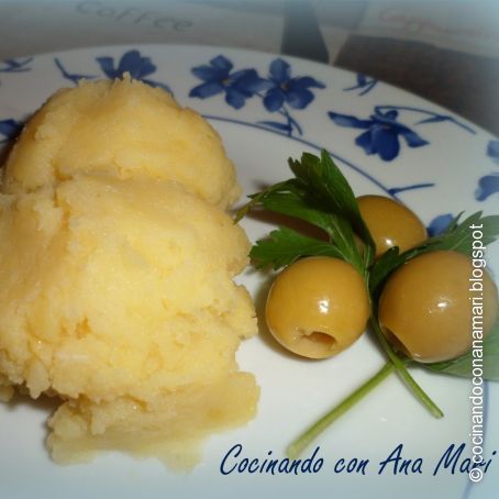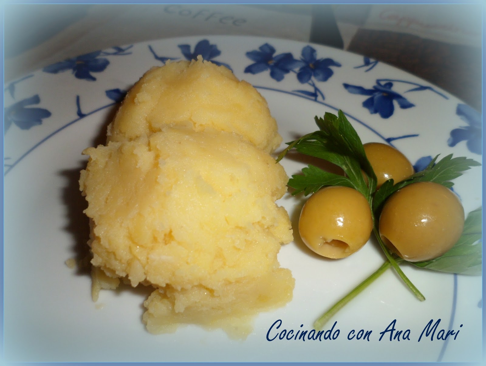 Cocemos las patatas unos 45 minutos las dejamos templar y después las pelamos y todavía calientes las machacamos, luego las dejamos enfriar, y le rayamos la cebolla o se la troceamos muy pequeña que no se note, después le ponemos la sal, el aceite un buen chorreón como tres cucharadas mas o menos y el vinagre ya a gusto de cada uno.