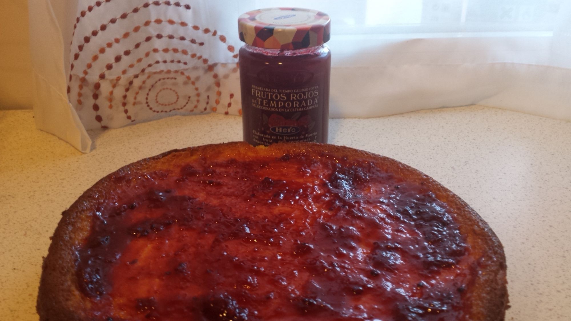 Echamos en un cazo la mermelada con 2 cucharadas de agua y calentamos suavemente revolviendo, después vertemos encima de la tarta y metemos la tarta nuevamente en la nevera.
