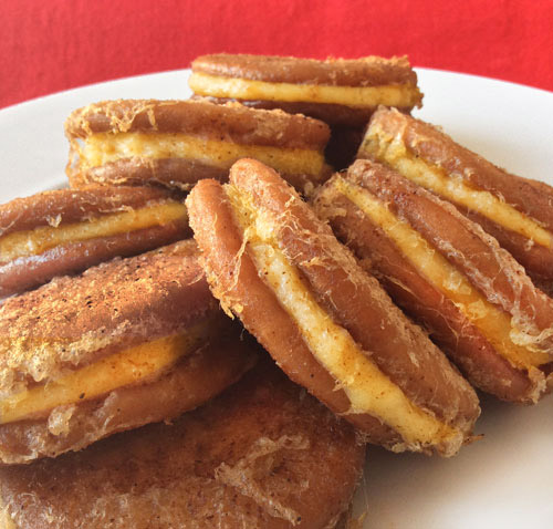 Galletas fritas rellenas de flan