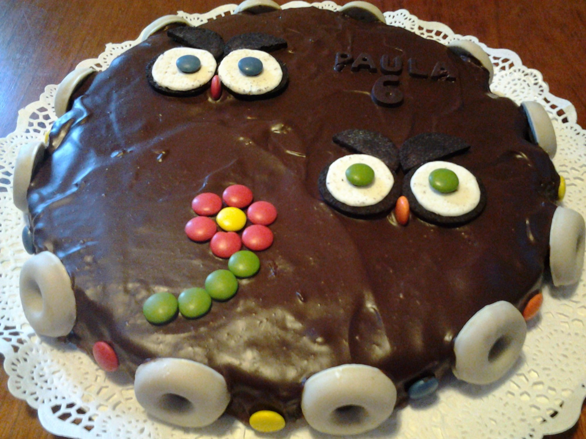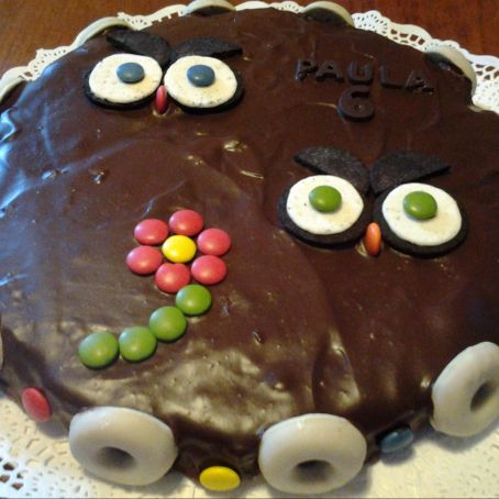 Tarta búho de chocolate y mermelada de fresa Hero