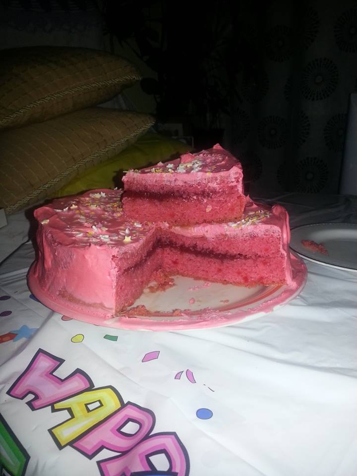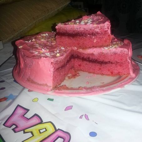 batir chantiyi segun el prospecto junto con la esencia de fresa y el colorante rojo, cubrir la tarta a gusto y adornar.