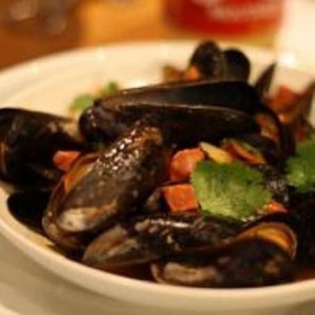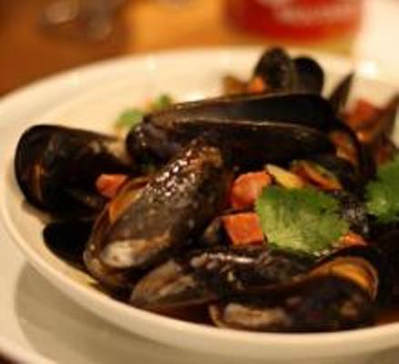 Dejamos los mejillones en esta salsa hasta que se abran.