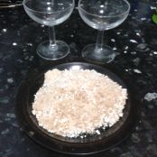 poner en una copa o donde queramos servir el postre un poco del polvo crujiente de galletas y suspiros y encima una capa de mermelada previamente templada en el microondas 10 segundos para que se vuelva un poco más líquida y fácil de manejar