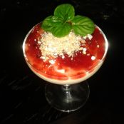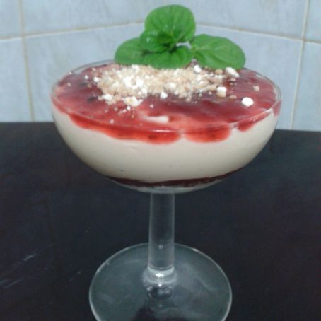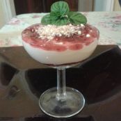 Crema mousse de limón elaborada a base de leche evaporada,leche condensada y limón, con mermelada hero temporada de frutos rojos y con galletas y suspiros molidos (merengue seco)