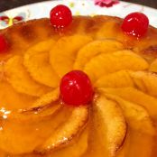 Pasado este tiempo sacamos del horno, desmoldamos y dejamos enfriar diez minutos. Mientras tanto preparamos un glaseado de mermelada Hero de melocotón, para ello ponemos en un cazo una cucharada de agua, cuatro de azúcar y cuatro de mermelada de melocotón.