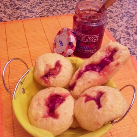 Se trata de unos panecillos elaborados con harina de mandioca y queso, que te sorprenderán cuando los comas con su relleno fundido de queso contrastando con el dulzor de la mermelada