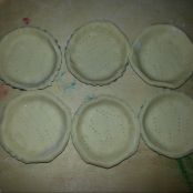 Sacar la masa de la nevera, estirarla y ponerla en los moldes individuales para tartaletas, previamente untados con mantequilla.