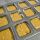 Cubrimos los huecos del molde con papel de horno y rellenamos con rodajas de plátano. Reservamos.