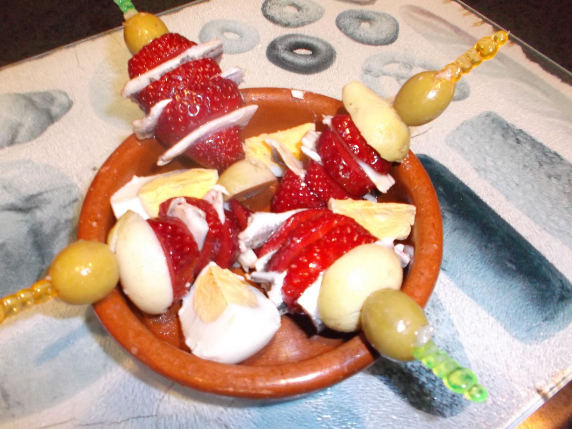 En el otro extremo del palillo introducimos la aceituna para darle un poco de colorido.