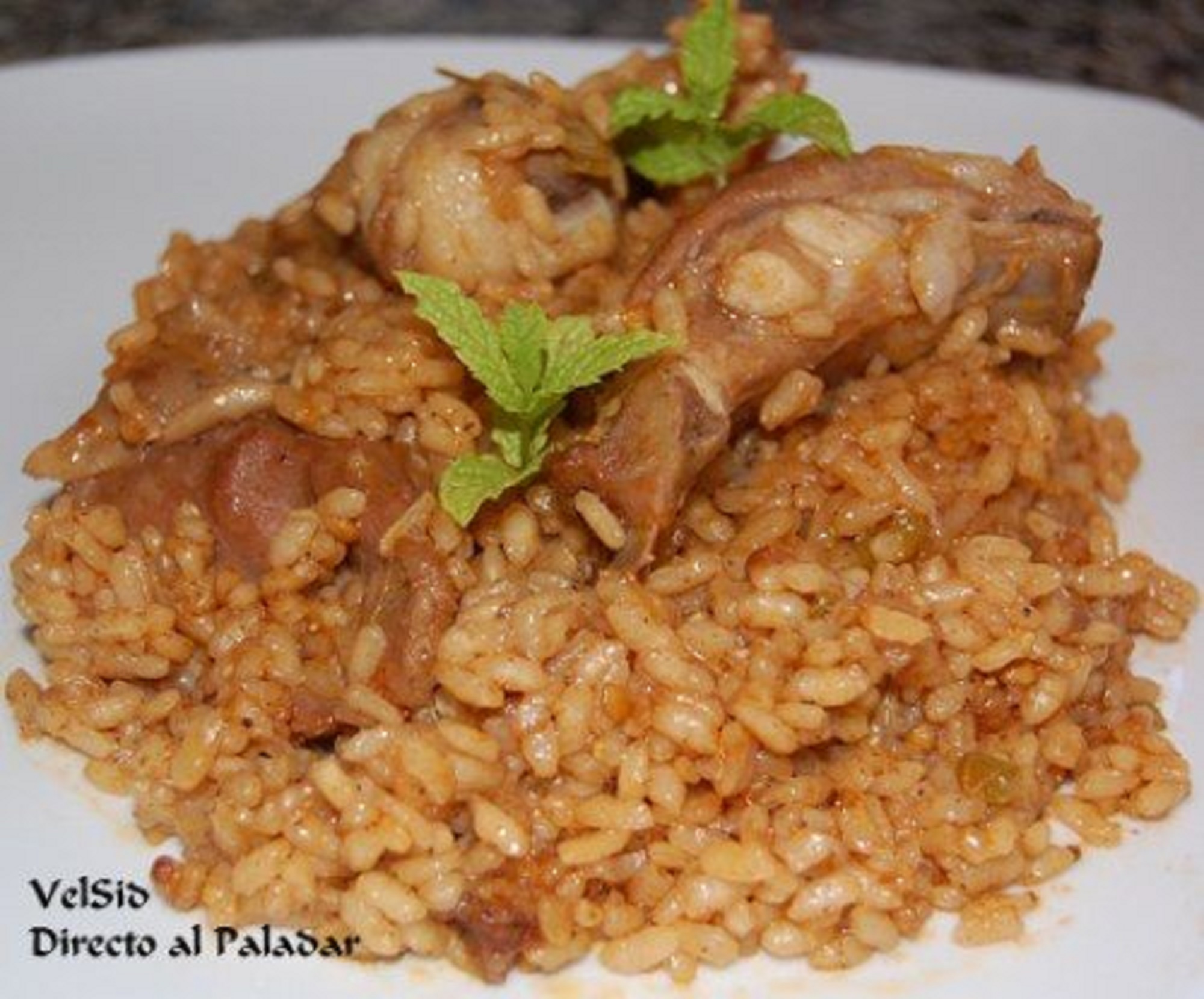 Echar el arroz, remover un poco y añadir 1 litro y cuarto de agua y el colorante. Poner a fuego fuerte hasta que empiece a hervir y bajar a fuego medio - bajo.